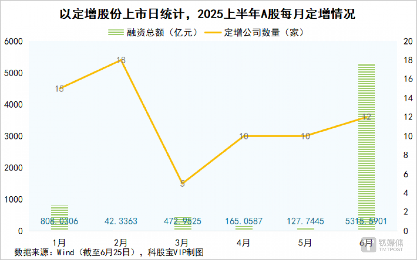 科股宝梳理Wind数据发现,截至6月25日,按定增股份上市日计算,上半年共有68家公司完成定增,对比2024年上半年减少约18.07%。但从募资额来看,今年上半年已合计募资6931.71亿元,同比大增608.81%。