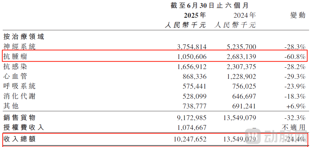 财报显示,抗肿瘤药物成了石药2025年上半年的收入重灾区,降幅超过60%,其他领域也有20%左右的降幅,业绩压力可见一斑。