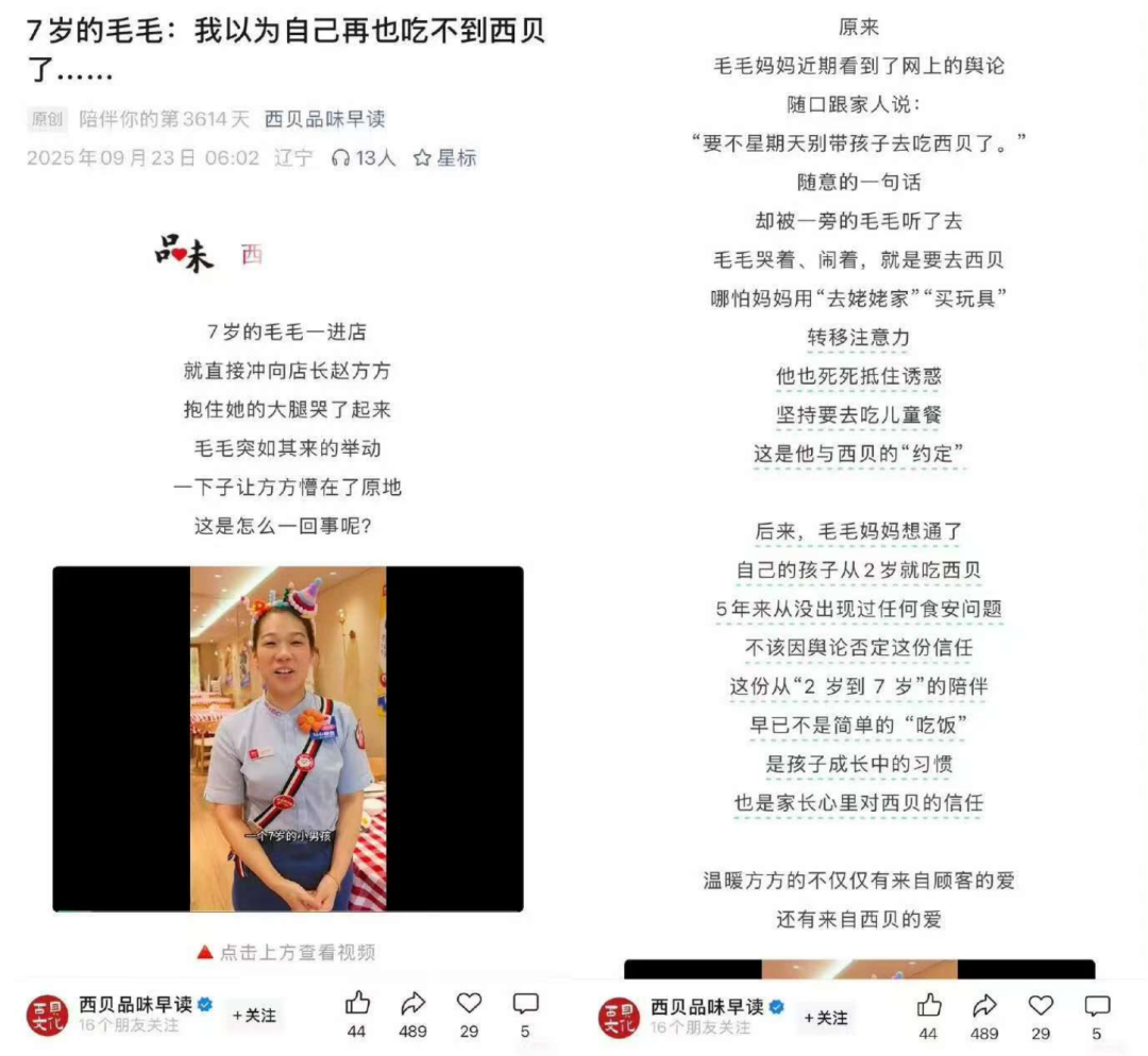 奇文《7岁的毛毛:我以为自己再也吃不到西贝了》一出,引发了全网群嘲。