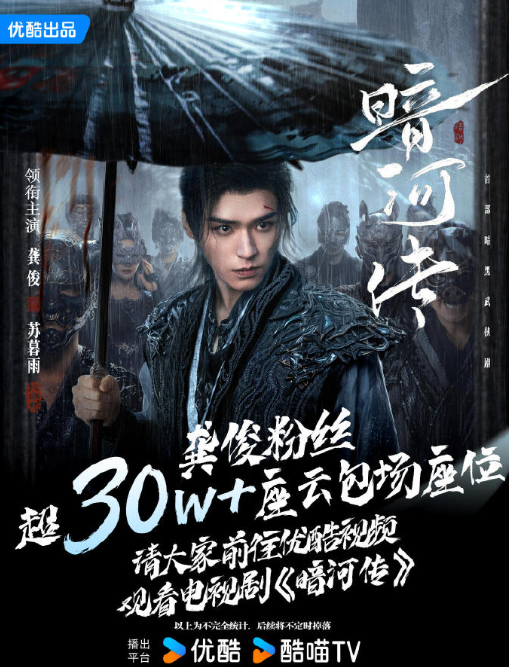 《暗河传》开播前,主演龚俊的粉丝已经准备了超过30万座云包场座位免费发放给观众,累计总价值超千万;