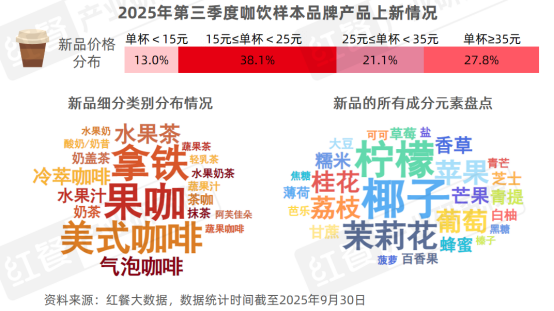 2025年第三季度,红餐产业研究院监测到有32个咖饮品牌共推出了548款新品,其中咖啡类和茶饮类新品一共有287款,烘焙类和甜品类新品总共有68款。