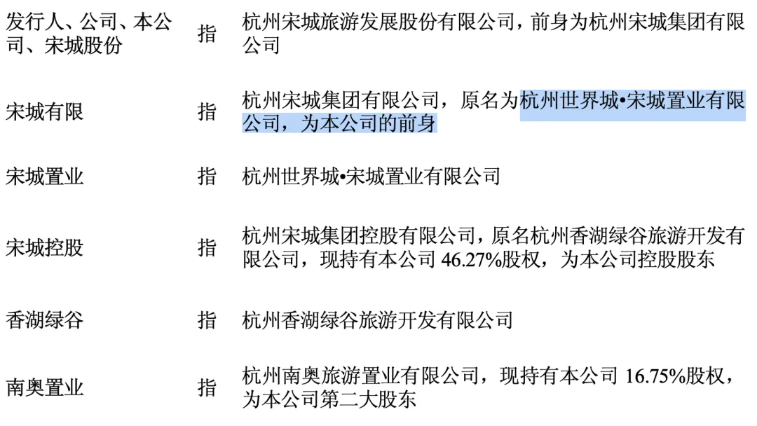 1999年2月, “杭州世界城·宋城置业有限公司”正式更名为“杭州宋城集团有限公司”,次年实施股改,宋城有限整体变更杭州宋城旅游发展股份有限公司,也就是后来上市的“宋城股份(2014年更名为宋城演艺)。